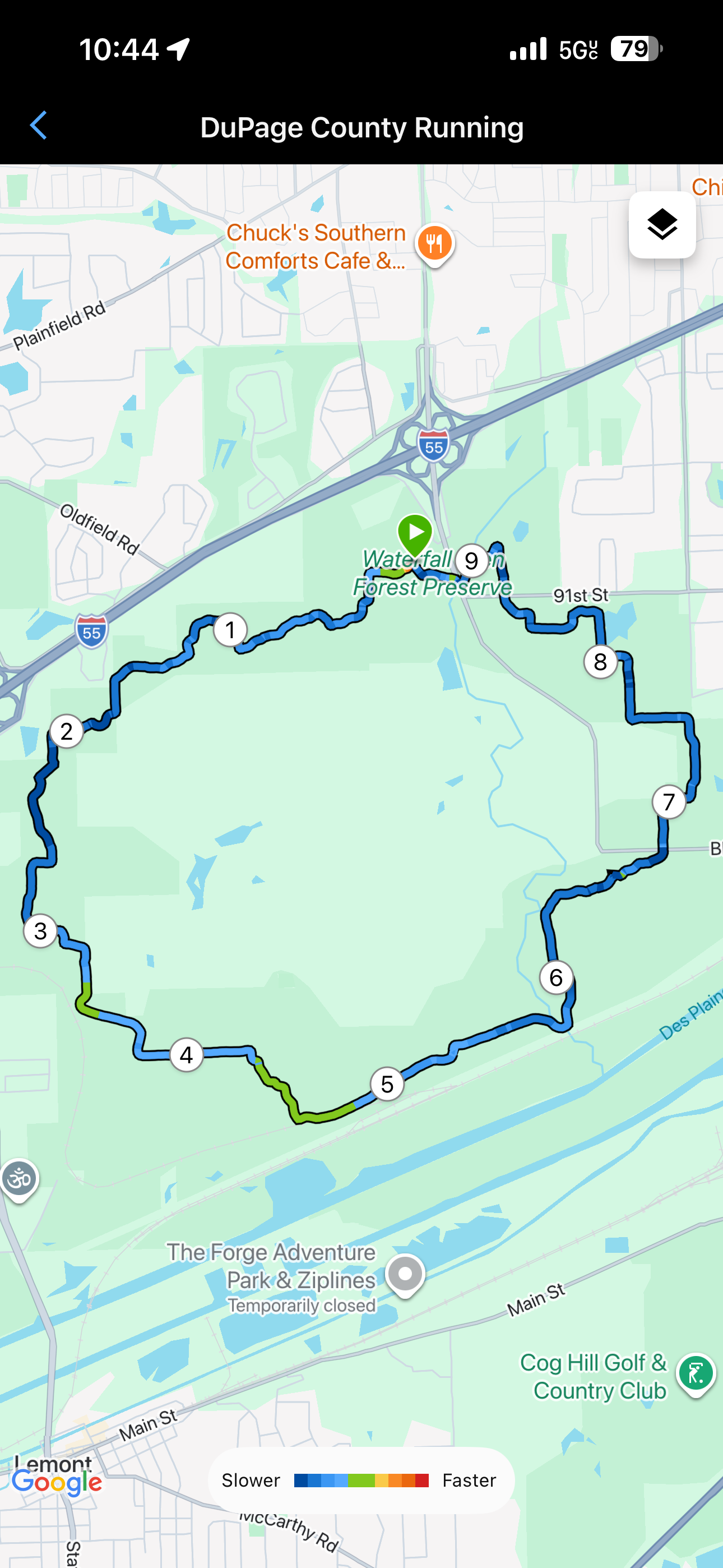 W Watty Loops. Ran with Brian for the first 1/3 before he turned back. The night before and during the run I was contemplating whether or not I should loop, and I just kept going.