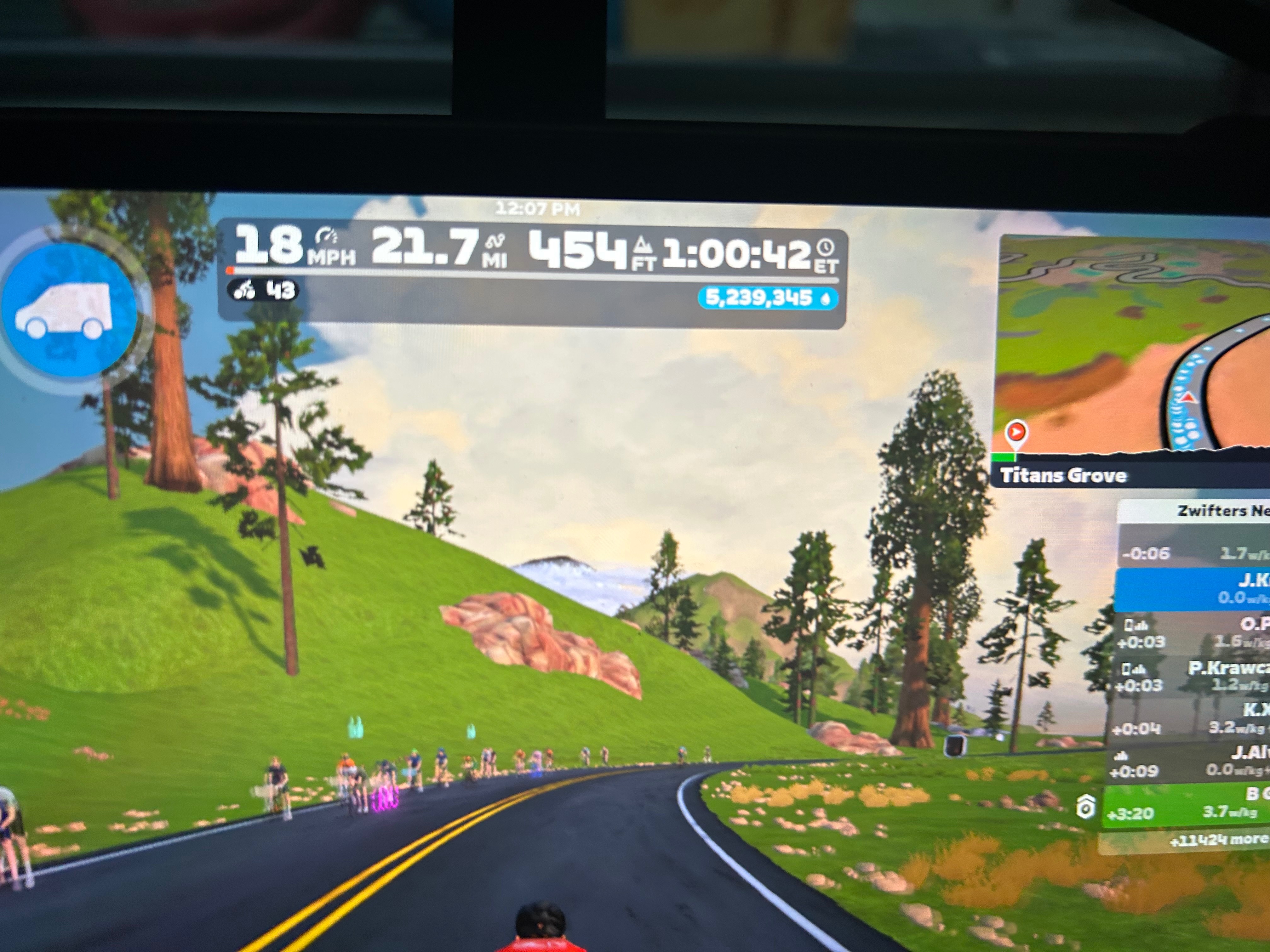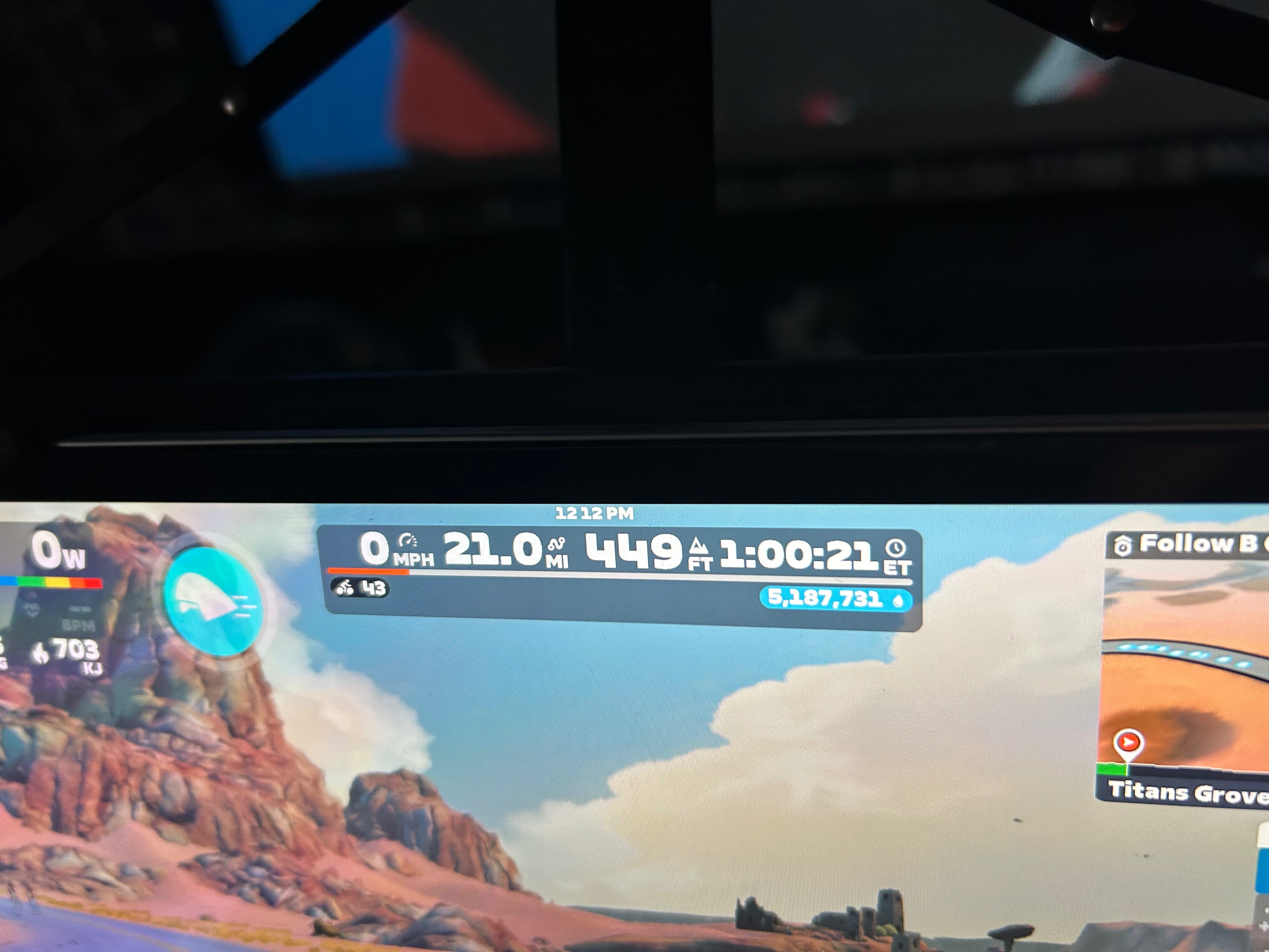 Bike workout cause hamstring is still bugging me. Did a 20 min warmup then 6x3 min hard with 1 min easy. Hr was 175 during the hard parts. Cooled down like 15 to get to an hour.