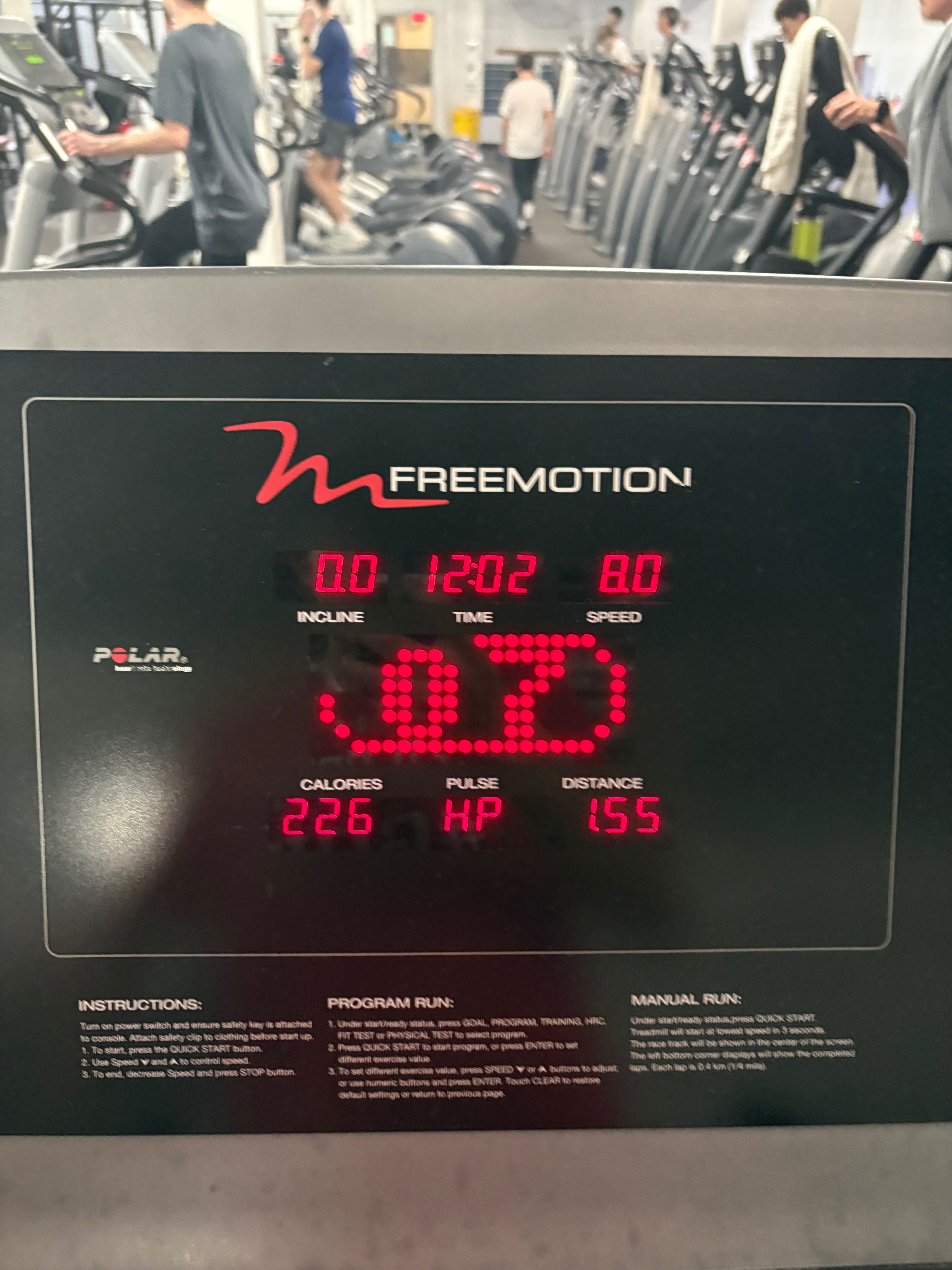 Treadmill run after elliptical since some people need the ellipticals. Felt really good. Did some pushups and core stuff after.