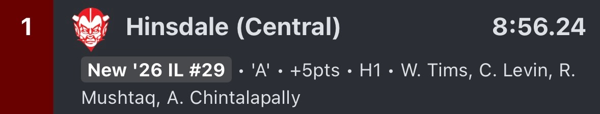Bud Mohns 4*800. Honestly the best l have felt before a race in a while. Race prep was almost perfect, legs felt good, and I wasn’t super nervous before. I got the baton 20 meters behind a kid from Maine South and spent the entire race trying to pass him. I almost passed him with 100 meters to go until I got hit by the biggest gust of wind. It sucks that the weather wasn’t perfect but I am happy that I completed with others and pushed myself through the entire race.