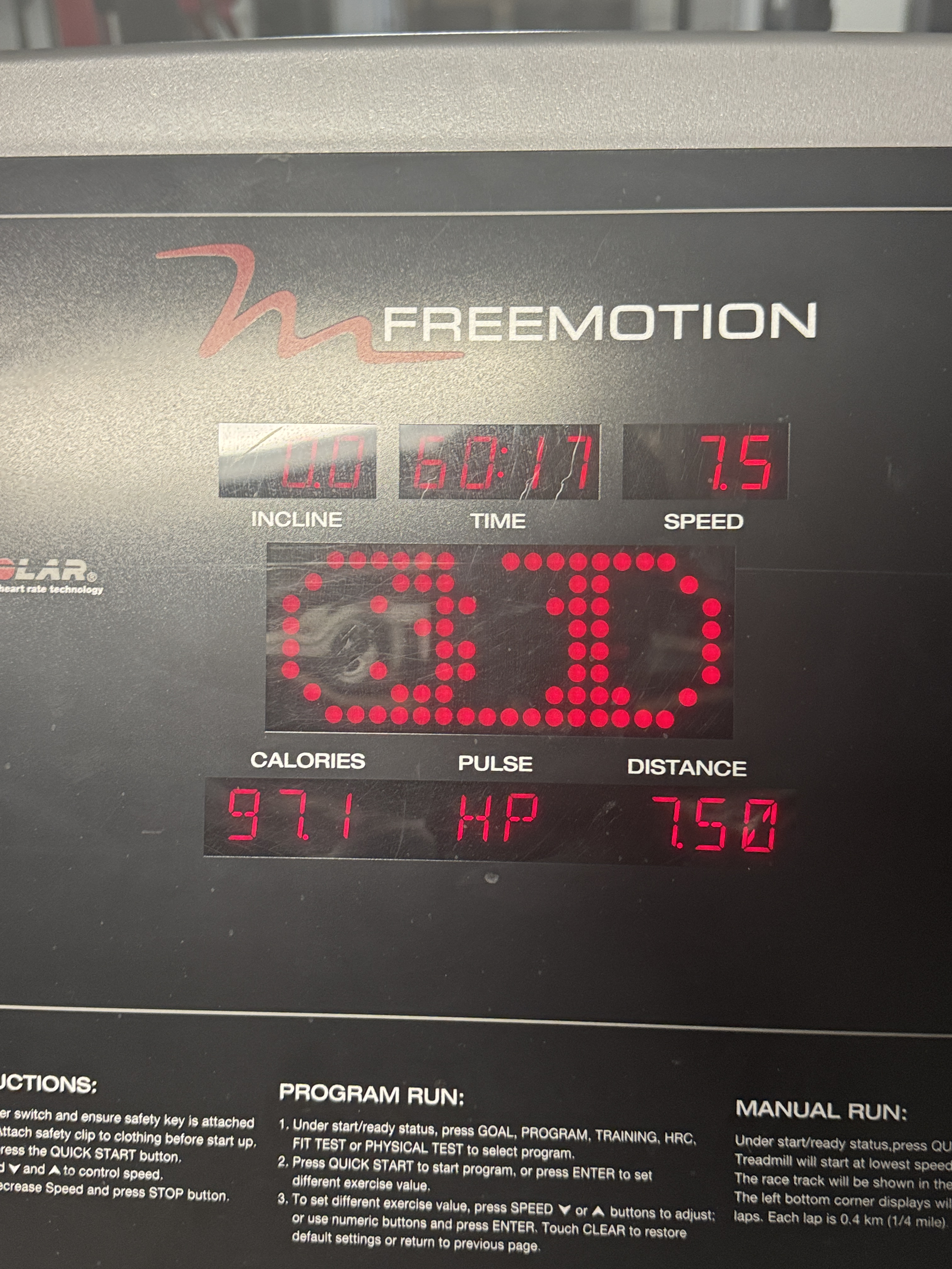 Decent first day back after sickness legs didn’t feel awful but didn’t feel good. The gps is 6.38 mi in 50:07, and I did 30 elliptical after