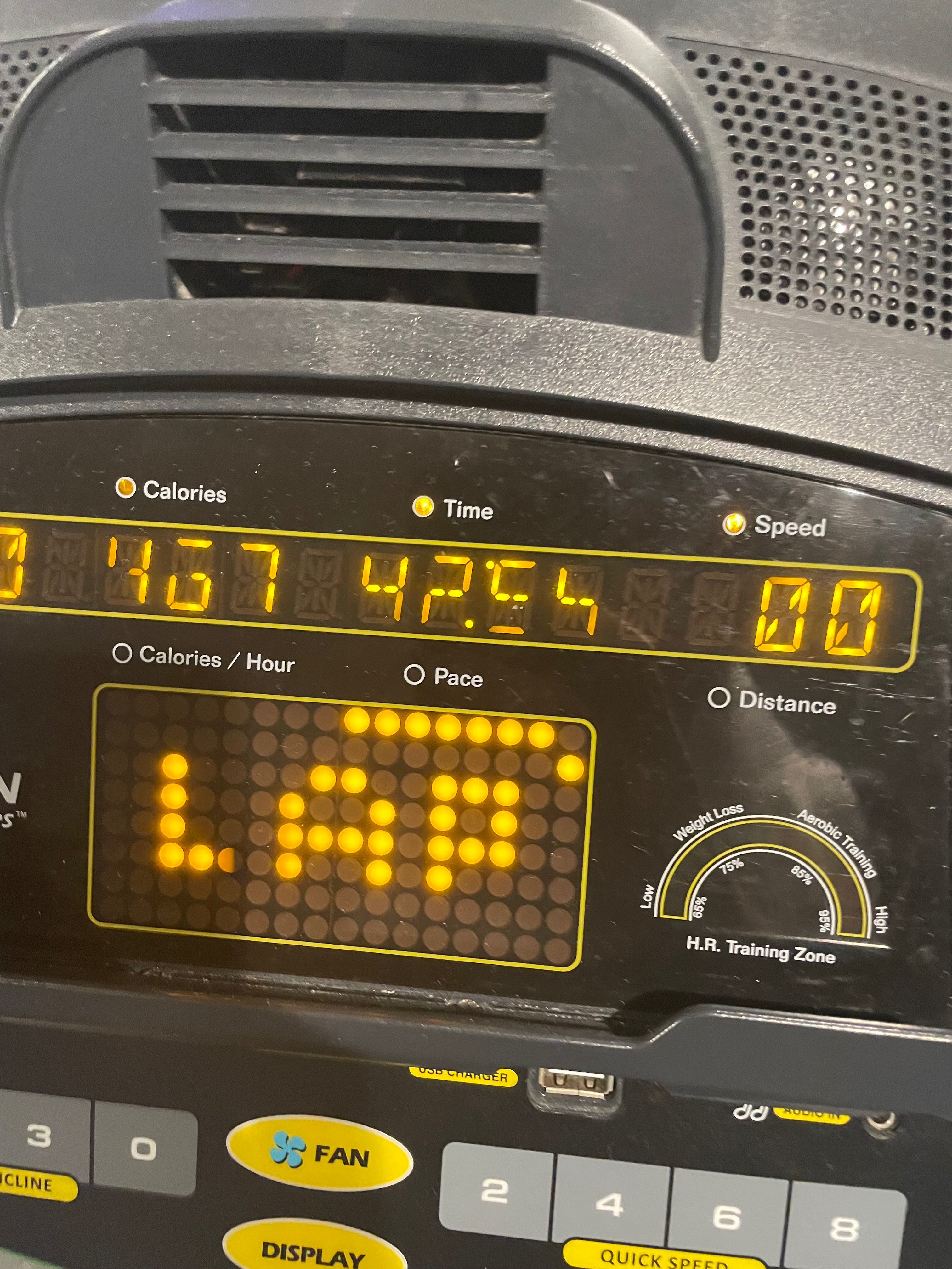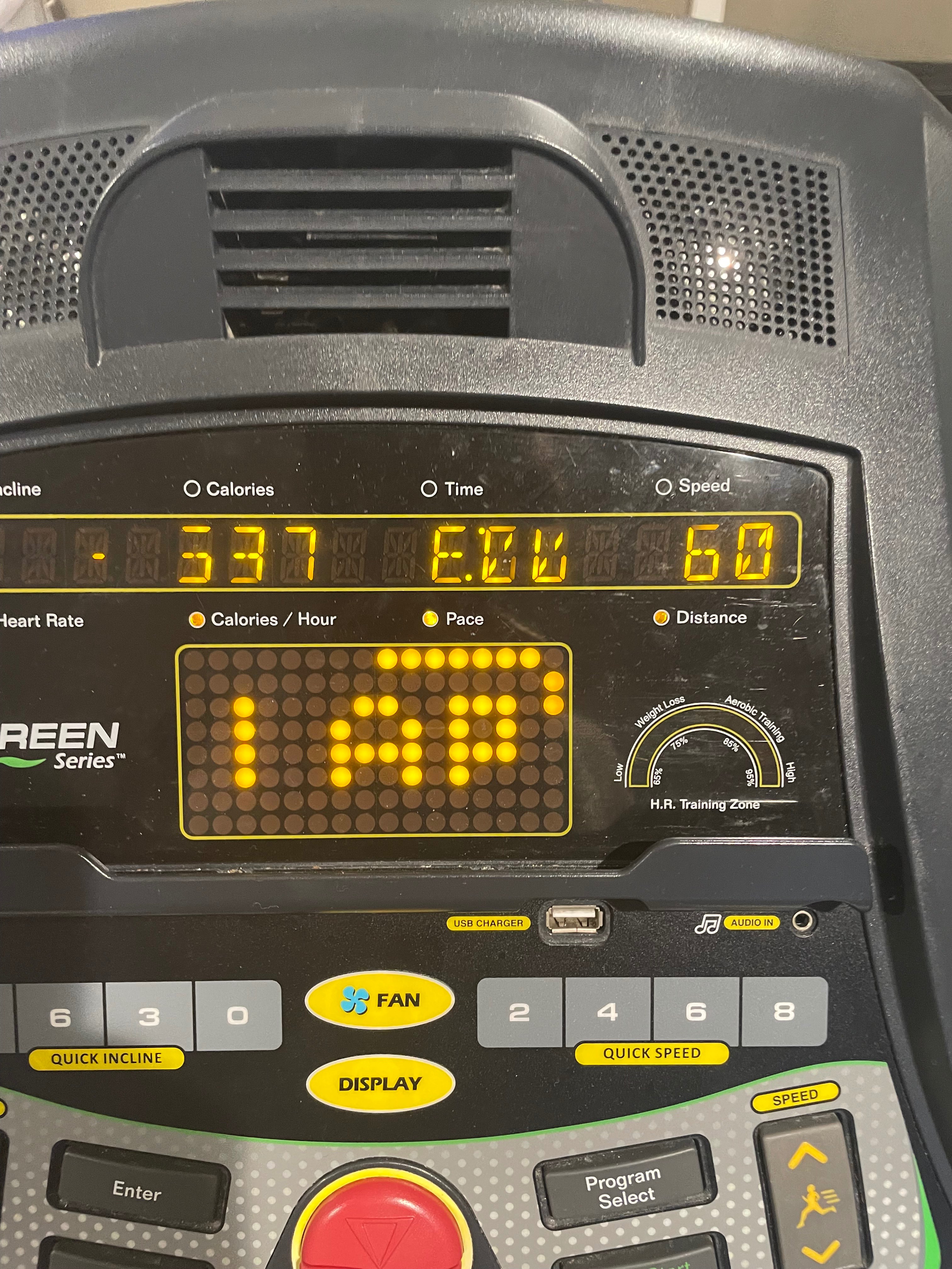 Treadmill tempo at the hotel: 2 mile warmup (7.5, then 8 mph), 3x mile tempo with 1 min rest (10.3 mph), cooldown (7.5 mph). Realized afterwards that tempo was supposed to be tmrw...