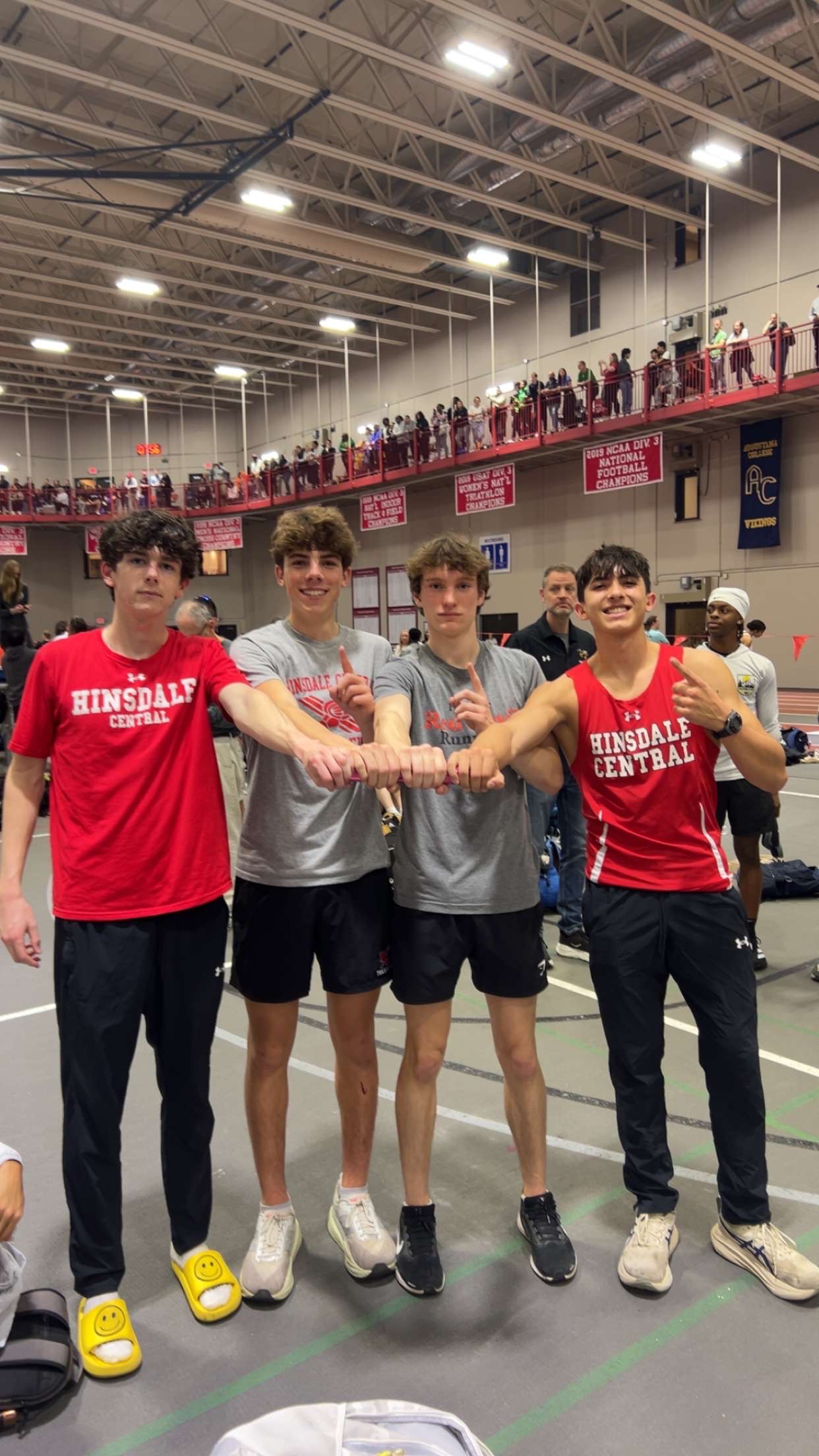 Mustangs. Led off the 4x8 and did NOT start in a good position. Got boxed in on the inside and the people that were on the inside stagger were going way faster than us. Ran the first 350 in last place until I finally got an opening and started to move. Passed hecka people and had way too much left for the end. Was still able to hand the baton off within a second of the leaders but I definitely could’ve gone way faster and put us out in front with better tactics. The boys pulled through though and it was a great race. Now we know we can definitely hang with some of the top teams in the state. Still was about to pr after going out in like 61 and ran 2:01. Sub 2 🔜. Also shoutout to tarasi for going sub 2 and Bart cause it’s his birthday 🎉.